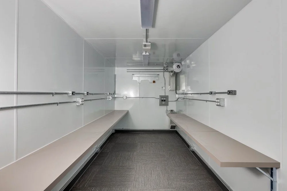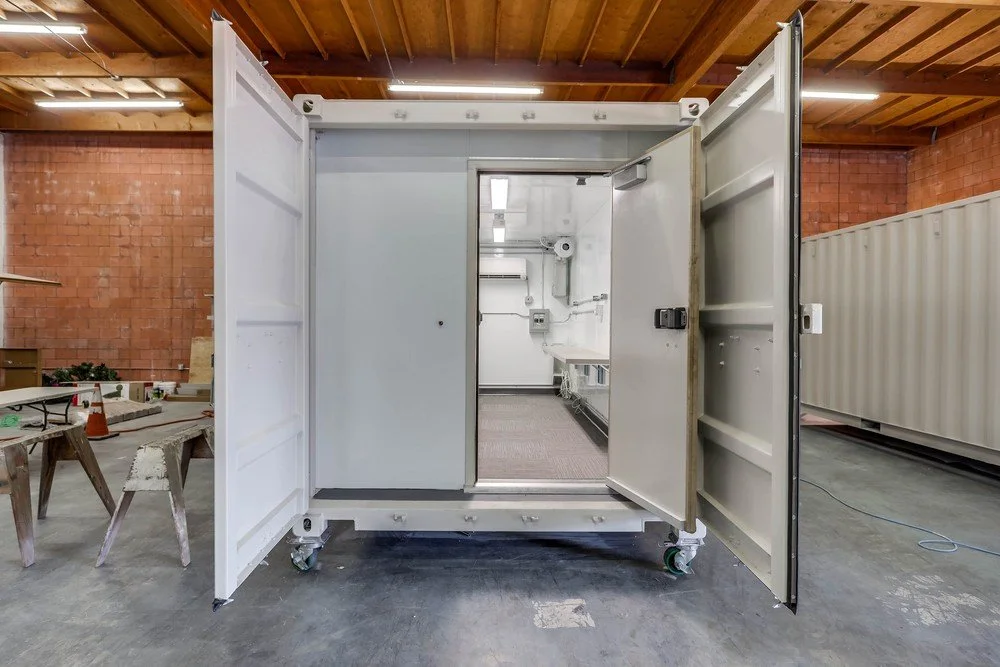 With almost 100% off-site fabrication, there is minimal contractor time on site. The container can be set up as a free-standing structure inside another building or outside on a foundation or pad, requiring only connection to utilities.